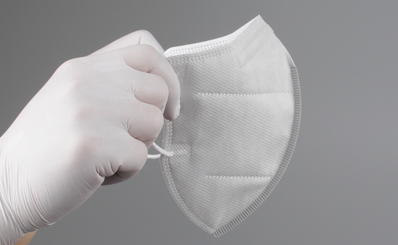④ 양손으로 마스크 전체를 감싸고 공기누설을 체크하면서 얼굴에 밀착되도록 조정합니다