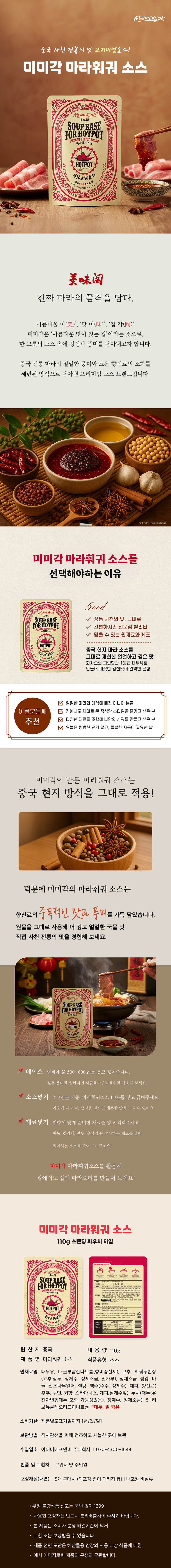 미미각 마라훠궈 110G는 사천 전통 그대로 깊고 얼얼한 국물낼 수 있는 소스입니다