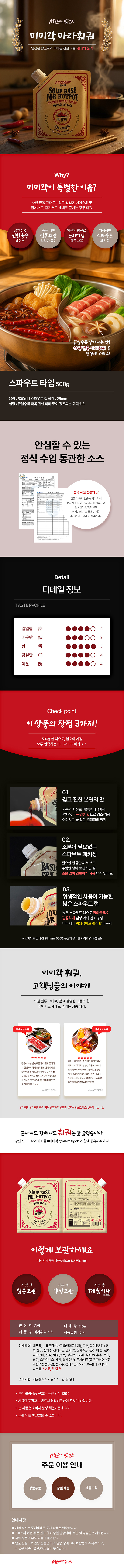 미미각 마라훠궈 500G는 사천 전통 그대로 깊고 얼얼한 국물낼 수 있는 소스입니다