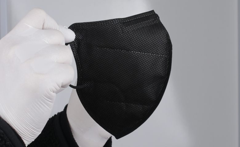 ④ 양손으로 마스크 전체를 감싸고 공기누설을 체크하면서 얼굴에 밀착되도록 조정합니다