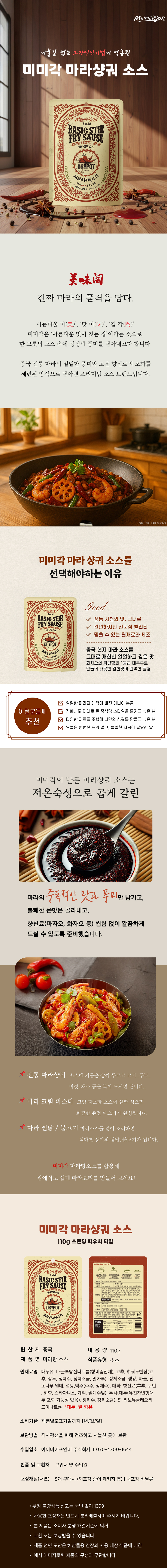 미미각 마라샹궈 110G은 소스에 기름을 살짝 두르고 고기, 두부, 버섯, 채소 등을 볶아 드시는 소스입니다
