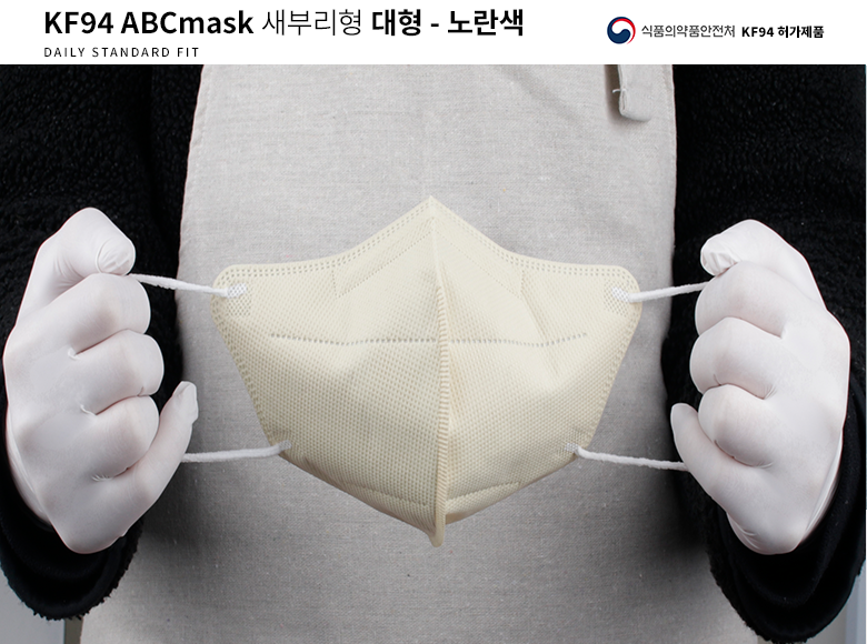 [하도웨버스] 에이비씨데일리새부리형황사방역용마스크 KF94 대형 노란색 30개